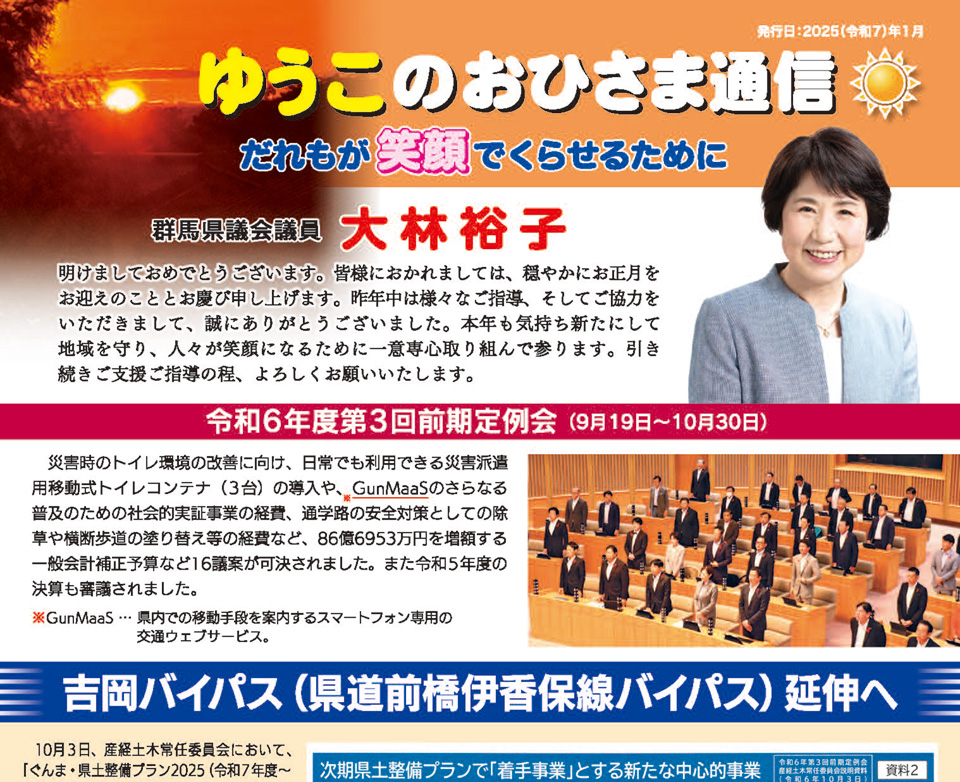 大林裕子後援会会報「ゆうこのおひさま通信」2025年1月号